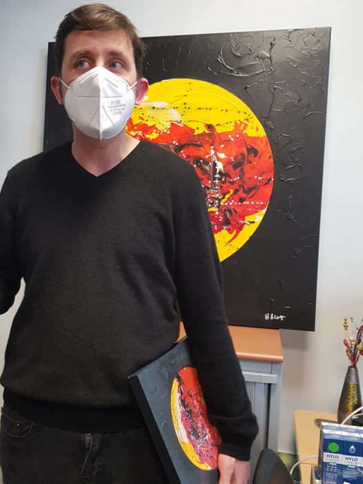 « Toute petite déjà je ne pensais qu’à dessiner, plus tard à peindre, bricoler, restaurer, détourner des objets. J’aime mettre en scène des moments de la vie de tous les jours au travers de personnages où de portrait tout comme une photo ; un arrêt sur image en peinture. Je n’ai pas de technique particulière, je me laisse aller ; je prends mes pinceaux et mon imagination fait le reste. Je passe tout mon temps libre à créer, c’est ma manière à moi de me détendre, de m’enfermer dans mon monde pour faire jaillir la couleur. Alors j’espère que vous prendrez plaisir à regarder mes tableaux, autant que je prends plaisir à les peindre ».
